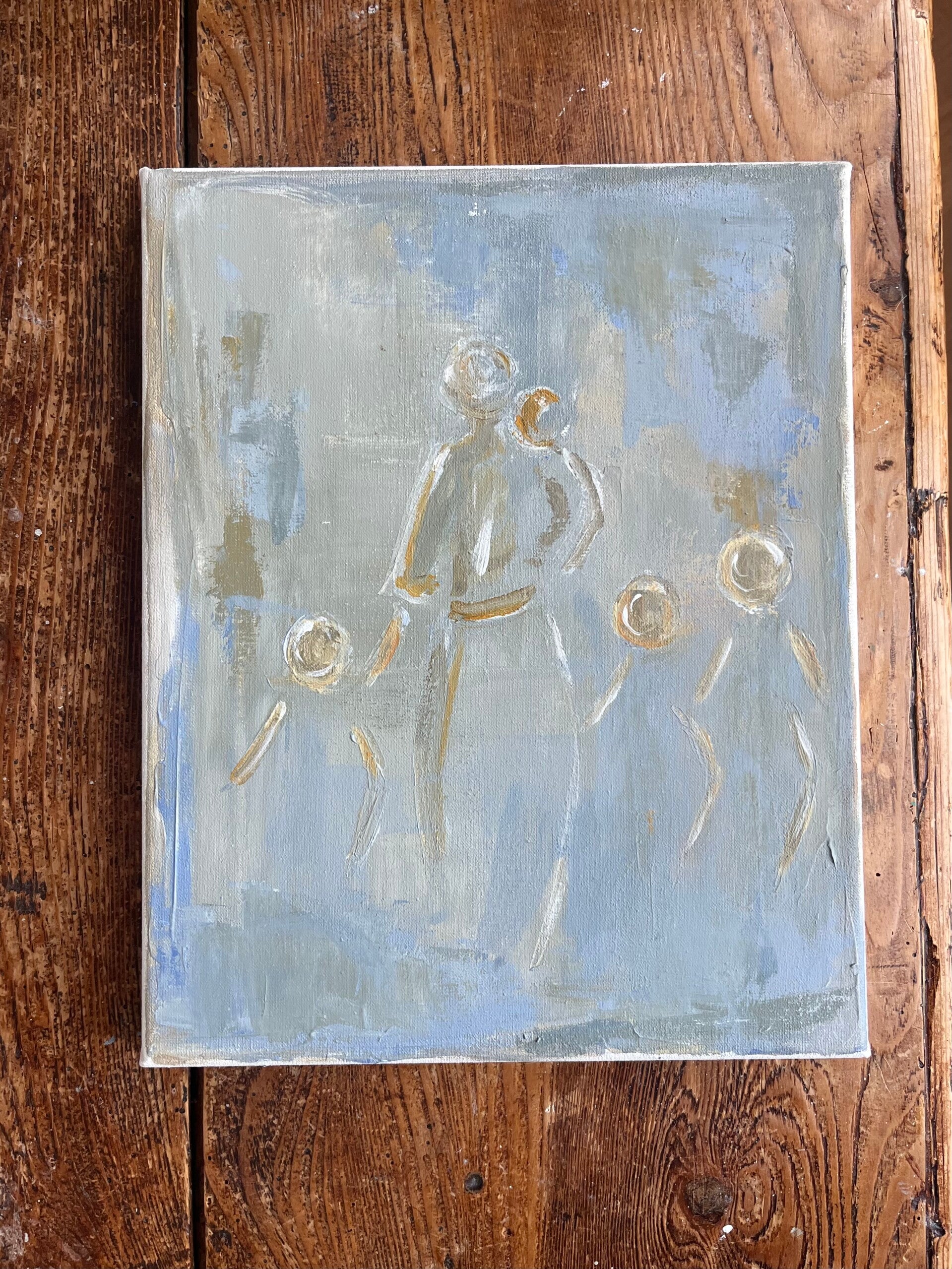 Mother and her two children, acryl and gesso. 23 x 30 cm on a cotton canvas. 300,- - sold -